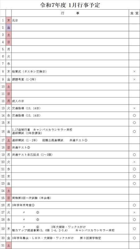 1月行事予定表を更新します。