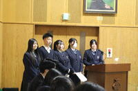 また、修学旅行委員が前に出て、代表者の井澤さんが「周りの人への感謝の気持ちを大切にするとともに、思い出に残る修学旅行になるよう、楽しんできたい」と挨拶をしました。