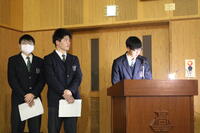まず部活動からサッカー部、男子バレーボール部、男子ソフトボール部、バドミントン部、写真部、茶道部の順で表彰を受けました。