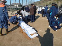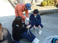 1年生は土のう積み体験とロープワークを実施し、ロープワークではもやい結びなど固く結ぶことのできる方法を習得しました。