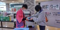 防災ワークショップでは、「非常用トイレの組み立て体験」や「トイレ用吸水剤はどれがよく吸うのかの実験」「アルミブランケットの比較」をしたり、6年間保存できるキャンディーを紹介したりしました。