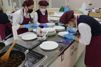 生徒たちは、この日に向けて「調理」の授業でランチのレシピを考え、日本調理製菓専門学校の先生方にご指導していただき、準備をしてきました。