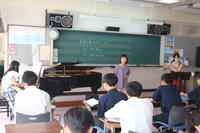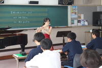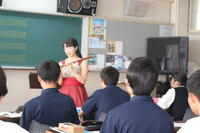 今年も昨年に引き続きフルート奏者の石坂美佳先生、ピアニストの岡本由加子先生に来ていただきました。本校音楽教師、松本温子先生も歌を披露しました。とても珍しい古代のバロックフルートや、ピッコロも持参され、木管楽器についてそれぞれの違いなどを生徒たちに分かりやすく説明していただきました。また、曲によってそれらの楽器を使い分けて演奏され、1曲1曲がとても素晴らしい演奏でした。