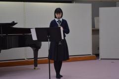 本日13時30分より、吹奏楽部による「第1回ソロコンサート」が開催され、卒業生や部員のご家族の皆様方、そして中学生を始めとする約60名の聴衆が、18名(2年生10名、1年生8名)それぞれの演奏に耳を傾け、楽しい土曜日午後のひと時を過ごしました。マルチパーカッションやマリンバ等の打楽器による演奏に始まり、クラリネット、サックス、トランペット、ホルン、トロンボーン、チューバなど管楽器による演奏が続いて、一つ一つの演奏に観客から大きな拍手が送られていました。管楽器演奏の折りのピアノ伴奏をして下さったのは、県立農業高等学校の井上拓先生。休憩前と一番最後に先生による素晴らしいピアノ独奏もあり、音楽に何倍も親しみ、そして楽しむことが出来ました。吹奏楽部員諸君は今、5月2日(木・祝)に開催される「第37回定期演奏会」(於:山崎文化会館)に向けて準備を進めています。9年ぶりの定期演奏会が、山崎の音楽文化にまた新たなる彩(いろどり)を添えてくれることを楽しみにしています。是非、頑張って下さい。