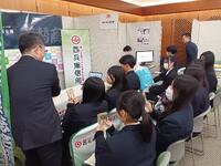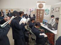 生徒たちは、「就職活動ミニセミナー」で自分の適性を見極めるためのヒントをもらってから、1人4社程度、自分の興味・関心がある会社の方々から直接お話を聞きました。