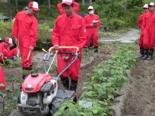 1年森林環境科学科の生徒が、「農業と環境」の時間に耕運機を使って畝間(うねま)の耕うんをしました。小さくても馬力があるので、深く耕すことができ作業がはかどりました。