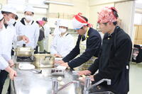 その後の交流会では、他校の生徒たちと一緒に「あんまん」を作りました。