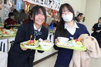 事前に予約をしていた生徒たちは、トナカイのカチューシャやサンタの帽子を被った食堂スタッフから嬉しそうにクリスマスメニューを受け取っていました。心のこもった特別メニューに生徒たちは舌鼓をうちました。