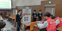 毎年12月に実施している防災体験活動で660人分の豚汁の炊き出しを行っていることや、山高街の駅で防災ワークショップ、募金活動を行っていることなどを発表しました。準備したポスターを提示しながら分かりやすく、本校の取組みを紹介することができました。