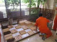 1学期から準備を始め、自分たちでデザイン・設計し、作品を作り上げました。作品のほぼすべてが山崎高校で加工した木材や木工品でできています。木の良さを知ってもらいたいと思い、木材を多く使った作品にしました。
