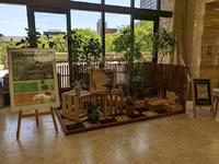 3年森林環境科学科のデザイン班が、県庁緑化展示を行いました。県庁2号館の玄関に作品を展示しています。