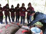 1年1組フィールド演習の3日目です。今日から男子は演習林で、女子は学校の農場で実習を行いました。