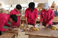 7班に分かれて授業を行っており、お菓子作りをする班や野菜を栽培する班、販売所を設計し作る班や農場開拓をする班などそれぞれがいろいろな取り組みを行っていました。