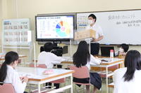 プロジェクト第1回目を6月30日(水)に実施しました。素麺組合の方より素麺の歴史や製造工程等について講義をしていただきました。その後、生徒たちは、特急、上級、機械麺の3種類のそうめんをゆでて、食べ比べをしました。そうめんを、若い世代にもっと普及させるための方法について、グループで協議し、発表しました。
