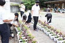 7月2日(金)、生徒会執行部のメンバーが、プランターにたくさんの花を植えていました!
