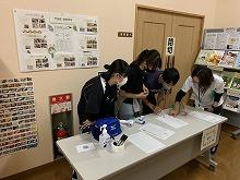 ↑ 受付の手伝いの様子 スタッフの方の説明をよくきいています。