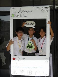 会場にて② 有馬高校手づくりの記念ボードでポーズ