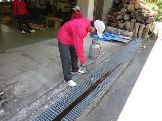 スギの板を焼いています(1年生)