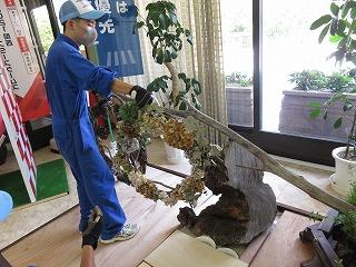 7月26日(木)、兵庫県庁において、森林環境科学科・森と食科が製作した緑化作品を展示しました。この取組は、農水産高校12校が持ち回りで1ヵ月間、県庁の玄関フロアに緑を飾る活動で、本校は例年、花の少ない8月を担当しています。