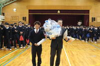 生徒からは生徒代表が感謝の言葉を贈り、生徒会役員が花束を贈呈しました。