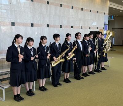 10月18日(土)、山崎文化会館に於いて「しそうバンドフェスタ2025」が開催され、宍粟市内のジュニアバンド1団体、中学校6校、高校1校、一般1団体が参加しました。本校吹奏楽部は、「さくらのうた」(福田洋介)、「糸」(中島みゆき)の2曲を演奏しました。1・2年生の新体制となり約1ヶ月、基礎的なことに目を向けて練習してきました。まだまだ、発展途上にありますが、努力の成果が出た演奏だったと思います。