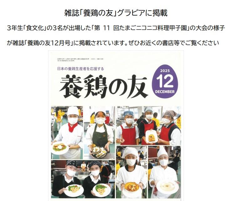 みなぎの通信「令和7年度11月号」 令和7年度11月号.pdf 雑誌「養鶏の友12月号」にたまごニコニコ料理甲子園掲載 {{item.Topic.display_title}} {{item.CategoriesLanguage.display_name}} {{item.Topic.display_summary}} もっと見る