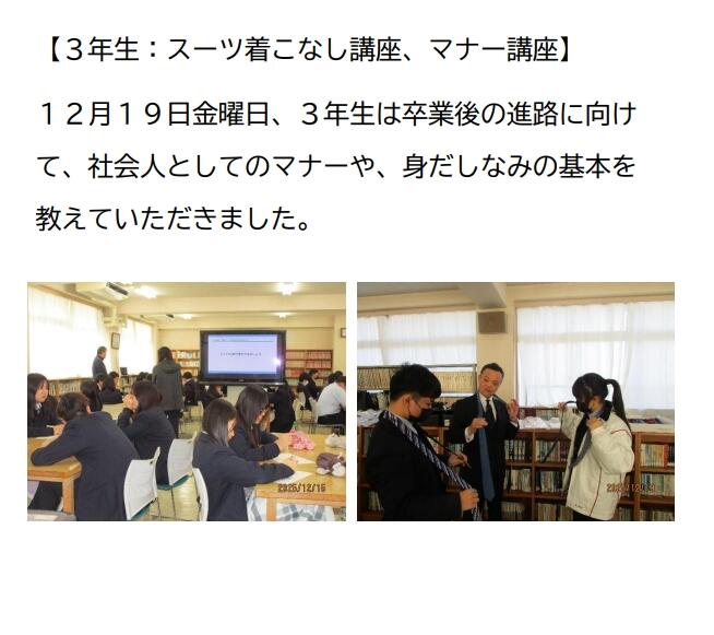 学校生活 全ての記事 全ての記事 カテゴリ みなぎの通信 保護者様宛文書 49回生 50回生 51回生 学校行事 警報発令時 部活動 アーカイブ 2025年12月 (9) 2025年11月 (7) 2025年10月 (9) 2025年9月 (3) 2025年8月 (2) 2025年7月 (13) 2025年6月 (8) 2025年5月 (8) 2025年4月 (5) 2025年3月 (2) 2025年2月 (3) 2025年1月 (24) 2024年12月 (2) 2024年11月 (2) 2024年10月 (6) 2024年9月 (4) 2024年8月 (0) 2024年7月 (9) 2024年6月 (3) 2024年5月 (5) 2024年4月 (6) 2024年3月 (1) 2024年2月 (2) 2024年1月 (2) 2023年12月 (4) 2023年11月 (4) 2023年10月 (4) 2023年9月 (3) 2023年8月 (2) 2023年7月 (4) 2023年6月 (4) 2023年5月 (5) 2023年4月 (4) 2023年3月 (3) 2023年2月 (1) 2023年1月 (24) 2022年12月 (4) 2022年11月 (4) 2022年10月 (3) 2022年9月 (2) 2022年8月 (12) 1件 1件 5件 10件 20件 50件 100件 【3年生 スーツ着こなし講座、マナー講座】 投稿日時 : 12/19 システム管理者 {{options.likeCount}} {{options.likeCount}} 123456789 »
