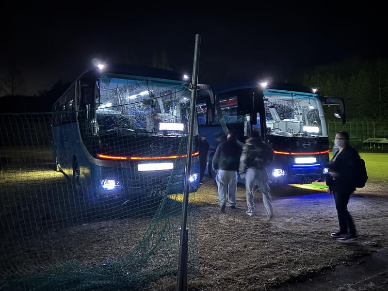今からバスに乗り込み、入村式会場の道の駅おおぎみに向かいます。