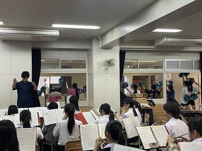 8月5日(火)のオープンハイスクールにご来場いただいた皆様、暑い中ありがとうございました。今後の本番で演奏予定の曲を合奏する様子を見学していただきました。