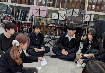 演奏終了後には、部長と副部長がインタビューに答えていました。楽器の音色も披露させていただきました。