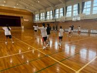 11日の午後は平野中学校との合同練習もしました。中学生と一緒に、様々なドリブルの確認やシュートの練習など基礎練習をすることができました。