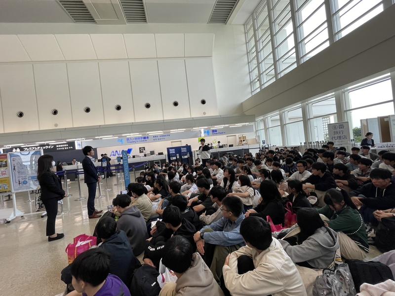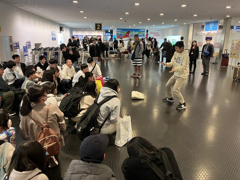A班は一足早く那覇空港で解団式を終えました。いよいよ神戸空港へ飛び立ちます。(写真)