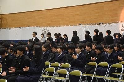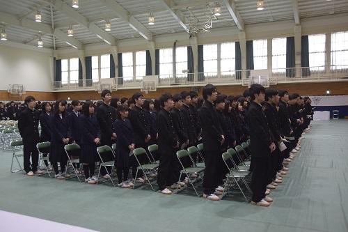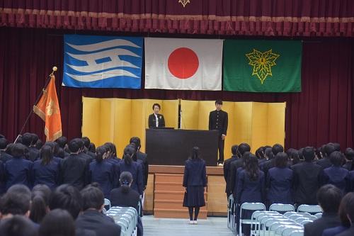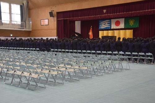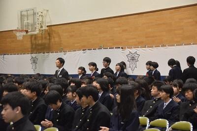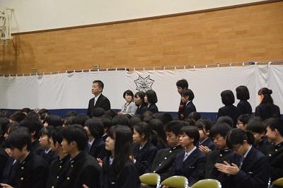 2月27日(水)に、卒業証書授与式予行、皆勤賞授与式及び卒業記念品贈呈式、新蔦会入会式が行われました。