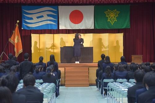 「間違うことは良いことだと思いますか?」「あなたの夢は何ですか?」という2つの問いかけ始まり、3年間を振り返りながら71回生に向けてメッセージを送ってくださいました。
