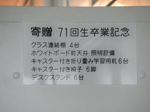 学校に贈呈した卒業記念品は職員室前廊下に設置され、在校生のために今後活用されます。