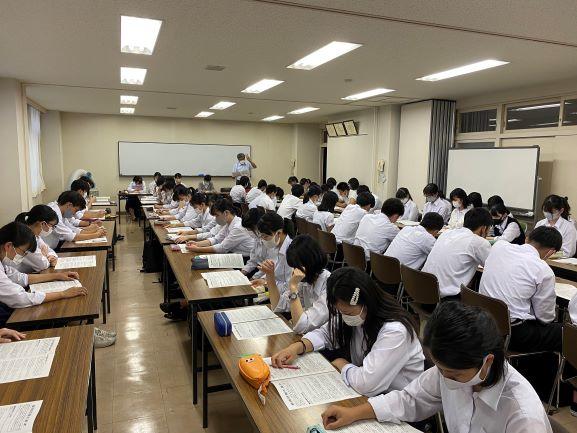 神戸市看護大学から林先生をお招きし、「看護を目指すということ~看護職は健康で豊かな生活のサポーター~」と題してお話をいただきました。内容は、看護職の資格と役割、看護職を目指す心構え、看護職への道、看護職の就職先などでした。コロナ関連の話もしていただきました。貴重なお話を聞くことができ、「理解が深まった」と参加生徒たちにはとても好評でした。林先生、ありがとうございました。