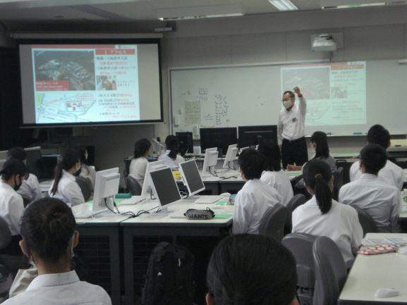 1日の仕事の流れ、仕事での辛いこととやりがい、想定外だったこと、働く意義、働くうえで大切なこと、高校時代にしておいてよかったこと、高校時代にしておけばよかったことなどを、ご自身の経験からお話くださいました。とても参考になる内容だったと思います。生徒に近い年代の職業人の話で、生徒の胸にまっすぐに届いたのではないでしょうか。「高校時代にいろんなことに挑戦してほしい」二度と戻らない高校時代を振り返ってのことばに共感しました。松吉様、貴重なお話をしていただきありがとうございました。