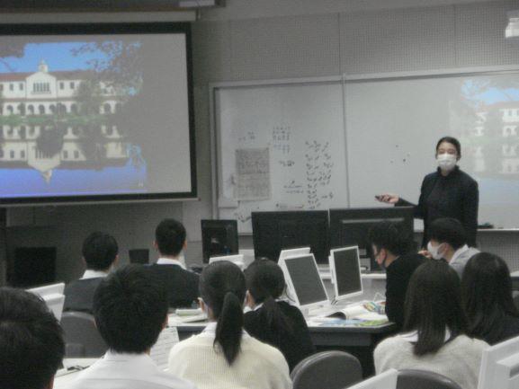 関西学院大学の高大接続センター入試課から中村佳恵様をお招きし、3年生を対象に、入試説明会を実施しました。まずは大学の説明があり、大きな特徴としては、①多様な学び、②留学、③就職に強い、ということでした。入試についての説明では、①合格ラインは得点率65%なので、過去問で70%を目標に受験準備をすること。②難問奇問はなく、基本問題が半分以上なので、基本問題で確実に得点すること。③問題数が多いので、時間配分に注意すること。などの対策を教えていただきました。「基本が大切。学校のワークブックや授業を大切に。」というアドバイスもいただきました。