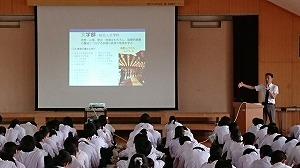 文系の学部に比べて、学んだ内容と将来の進路(就職先)との結びつきが強いこと、近年では学部横断的な研究の態様が進んでいることなど、文理選択にあたって貴重な情報を数多く提供していただきました。2学期に迫った文理選択に、役立ててくれることを期待しています。