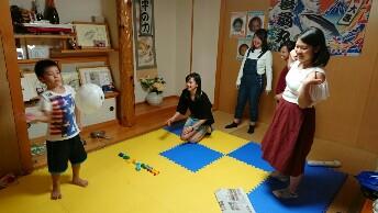 男子生徒が訪問させていただいているご家庭です。ちょうど夕食の最中で、この島でとれたお魚をいただいていました。
