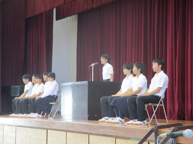 1学期末の表彰伝達と、全国大会、近畿大会出場者の壮行会を行いました。