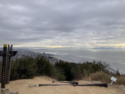 ↑早朝の鉄枴山より須磨海岸、神戸空港、大阪湾…を望む。行程はまだ序盤。