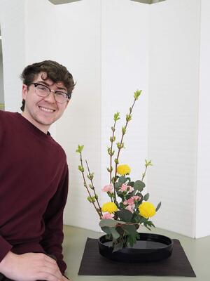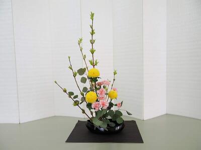 新年度第1回目のお稽古は、キクとカーネーションにユーカリを合わせました。