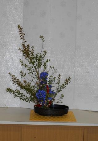 本日の花材は秋を満喫できるお花で、1年生はピンポン菊、2年生はリンドウがメインでした。
