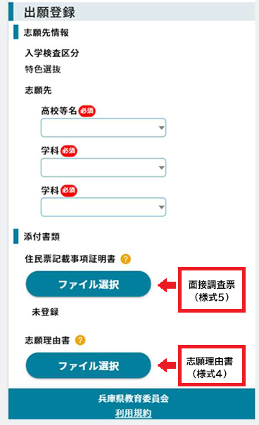 本校の特色選抜入試の出願情報の登録にあたり、提出書類を添付する場所がないという問い合わせがありました。