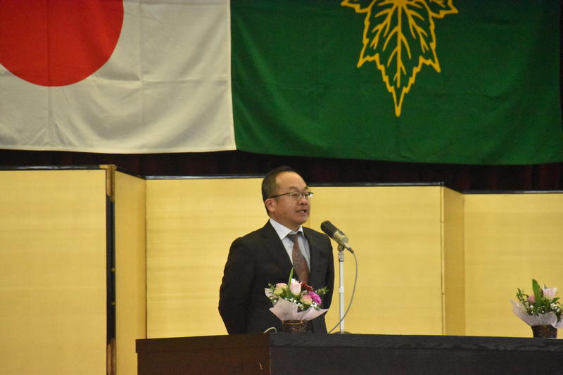 「よろしくお願いします」と生徒会長が朗らかに挨拶しました。