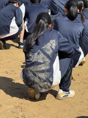前日の雨が止み、女子はサッカー、男子はバレーボールを行いました。一年生最後の行事ということもあり、熱戦が繰り広げられました。