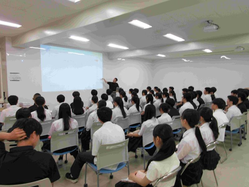 7月12日の午前中に1年生対象で分野別説明会を実施しました。たくさんの大学から講師の先生方が来てくださって、生徒たちはそれぞれ3分野の説明を受けました。講師の先生方からは、「メモを取りながらとても熱心に聴いてくれた」というお言葉をいただきました。生徒の皆さんは、今回の説明会を参考にして、夏休み中のオープンキャンパス参加の計画を立てましょう。講師の先生方、ありがとうございました。