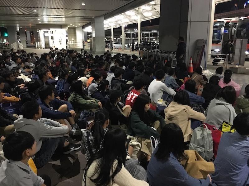 空港駐車場前で修学旅行閉会式が行われ、そして皆それぞれの行き先のバスへ乗り込みました。