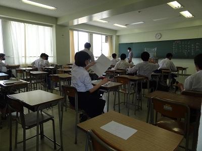 クラスの半分ずつで登校し密を避けての授業風景です。